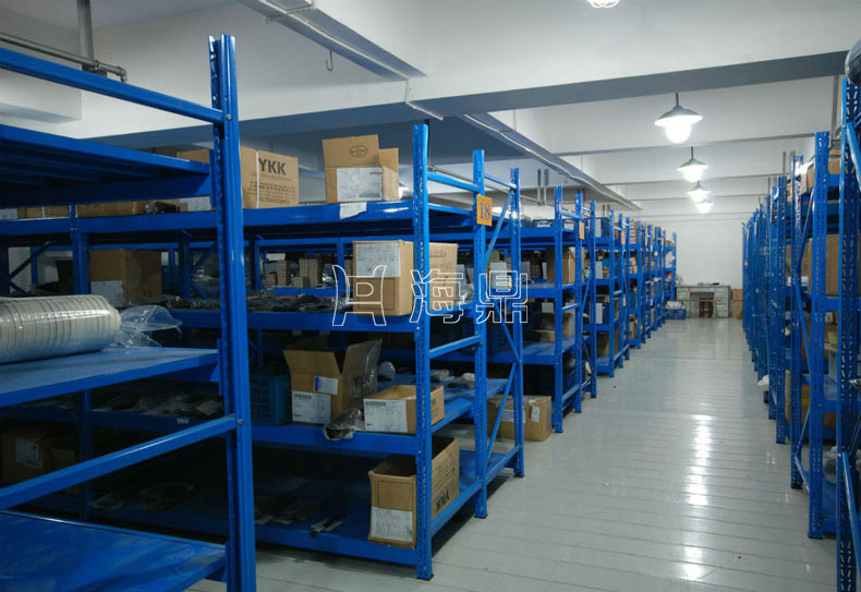 首先,既然是物流仓储货架设备公司的轻型搁板货架,说明其承重是较轻,所以适用于存储相对轻型的货物,以人工存取货为主。所以其一般是设计搁3-6层,高度一般不超过3米,适合品种多,规格不一的货品存放。轻型货架可以结合登高梯等仓储配套设备存取货,可以结合储物箱等存放货物。